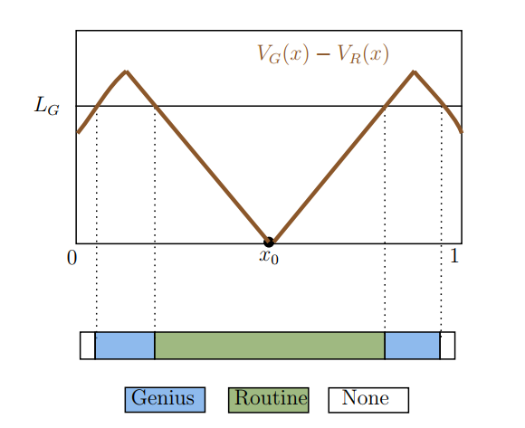 El paper plantea la forma más eficiente de distribuir las tareas más complicadas entre trabajadores (distinguiendo entre trabajadores masa o rutinarios y trabajadores genios) mediante el concepto de las “regiones de dificultad”, para estudiar después cómo se ven afectadas estas reglas de distribución cuando entra en juego un suministro ilimitado de genios (la IA).