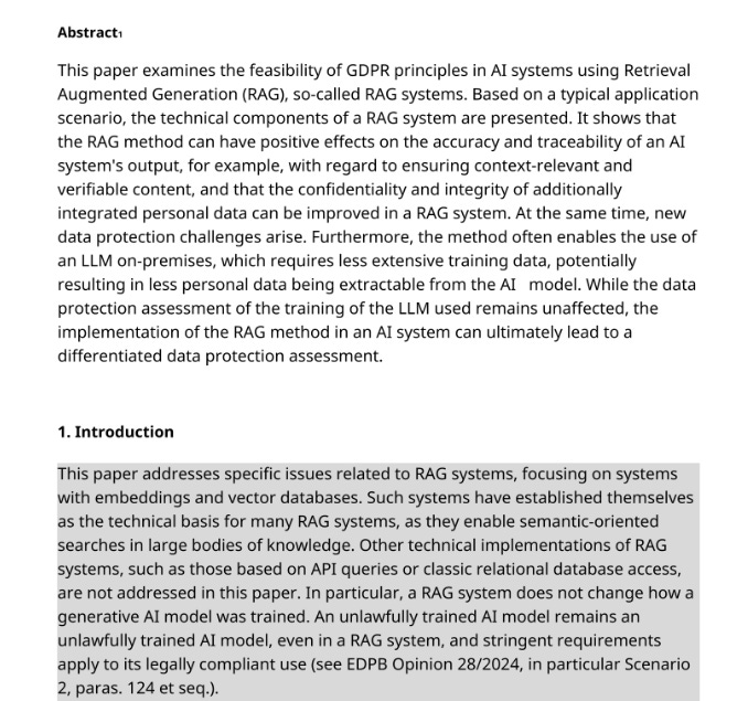 .- Documento interesante de la DSK alemana (la conferencia creada por las autoridades alemanas) sobre IA que usan “Retrieval Augmented Generation (RAG)”, vía Federico Marengo. Su comentario actúa como primera capa de los elementos relevantes, y el propio paper como política de privacidad.