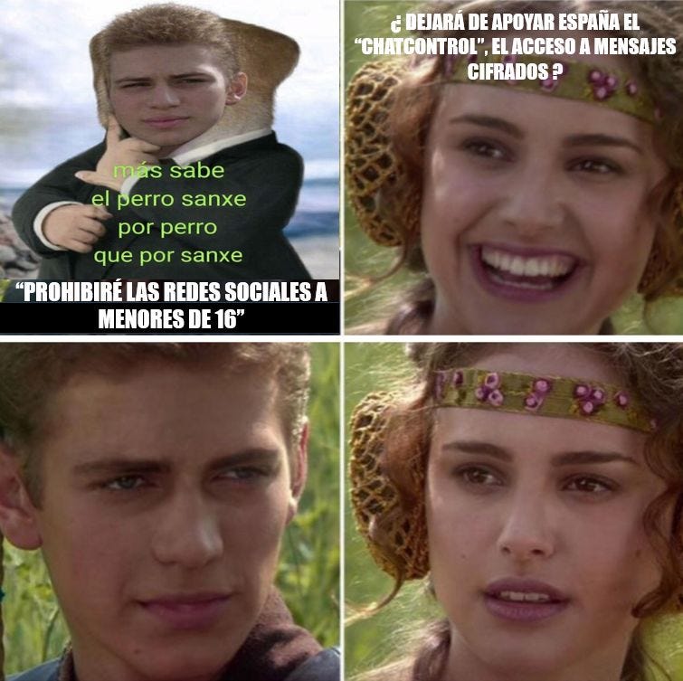 .- Siguiendo con la España mágica y misteriosa, se ve que nos hemos unido al selecto grupo de países que van a prohibir las redes sociales hasta los 16. La semana pasada hablábamos de que Francia iba al choque con ello, pero se ve que aquí quemaba el tema. Aunque al estilo castizo de que aquí no es la noticia tras la aprobación en el Congreso, sino que el Presi se marca triplazo en atril de evento fuera del país. Recuerden que ya se marcaron un triplazo de nombre oficioso “pajaporte”, que se perdió en la bruma.
