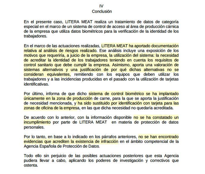 .- Genis Riverola adelanta la resolución (aún no publicada por la AEPD) más esperada de la Galaxia en la que se archiva un procedimiento sancionador contra una empresa alimentaria que acreditó la necesidad de implementar un control biométrico estrictamente limitado a los trabajadores con acceso al área de producción de carne: necesidad objetiva y valoración de alternativas debidamente justificadas.