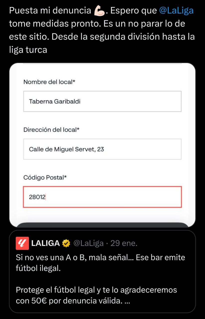 Como dice la expresión que va camino de convertirse en lema nacional: España no te la acabas. De los creadores de “te activo el micrófono de tu móvil sin que te enteres mientras usas tu app de LALIGA”, o “te bloqueo la RAE, la Wikipedia o lo que me salga de las IPs hasta que se acabe el partido”, llega el “denuncia a tu bar por 50 lereles”. Ojo, 50 lereles sólo si eres uno de los 1000 primeros Judas que te chivas y si cumples todos los requisitos de la ideaca, que no son pocos.