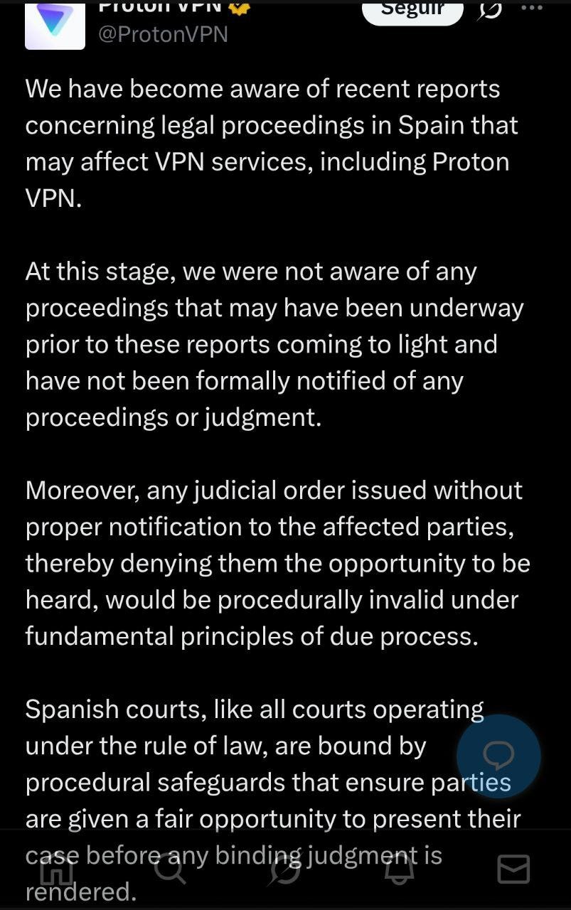 -. LaLiga no para hasta que se caiga por un precipicio. Ahora parece que han conseguido que un juzgado de lo mercantil de Granada les permita requerir a las propias VPN el bloqueo de x direcciones IP. Justo a dos de las grandes: Nord y Proton.