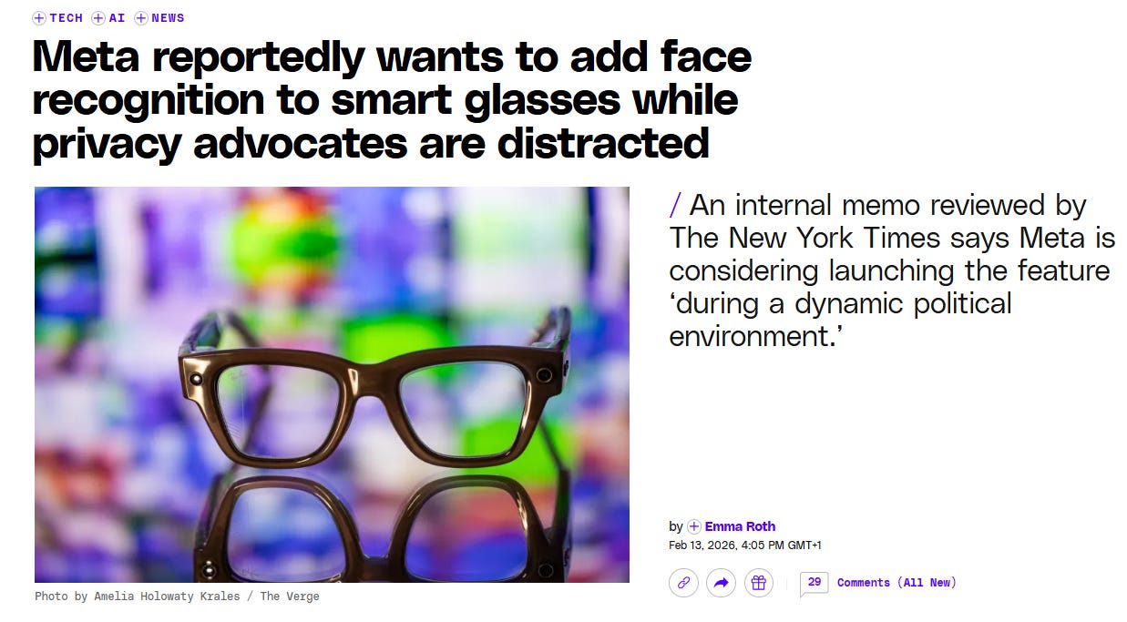 Según la prensa especializada (The Verge, TechCrunch), la última Zuck-ada de Mark es añadir una funcionalidad nativa de reconocimiento facial a las Meta glasses… aprovechando que los pelmazos defensores de la privacidad tenemos tantos frentes abiertos que no sabemos ni por dónde nos da el viento. Empiezan probando cosas en las Oculus (por patente siempre estuvieron ciertas cosas), y luego van a las que conocen el gran público.