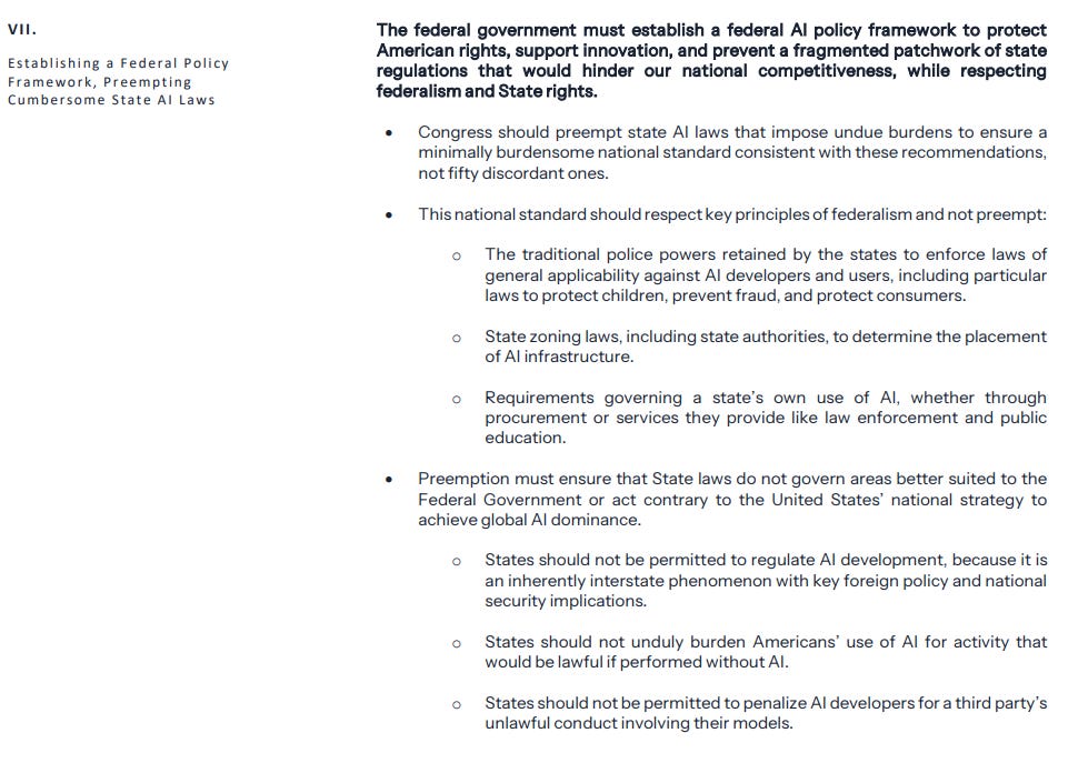 .- The regulatory framework on AI released by the White House might not seem to contain anything unusual (beyond the fact that it says “Trump” and that the protection of minors almost suggests it’s Melania’s idea). The problem is that Trump doesn’t do anything without intent. Most of the document contains sensible proposals for Congress: age verification and platform oversight, ensuring citizens don’t bear the increased electricity consumption of mega AI industry, anticipating research and appropriate measures for identity theft and fraud, not legislating anything that removes judicial authority to decide on IP infringement; but at the end it drops the bomb. The subtle way of waging war against Anthropic and anyone who refuses strict AI control:“act contrary to the United States’ national strategy to achieve global AI dominance.”