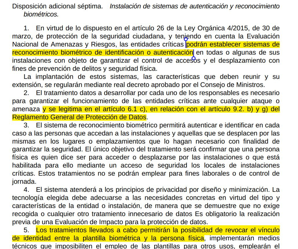 .- Cuando la AEPD atranca la puerta, la biometría entra por la ventana. No, este no es un resumen fidedigno del post de Patricia Chenlo, pero nunca dejen que la verdad les arruine un buen titular: Patricia comenta el Proyecto de Ley de protección y resiliencia de entidades críticas que habilita la autenticación e identificación biométrica para accesos en entidades críticas, bajo obligación legal, interés público, EIPD obligatoria y prohibición de usos laborales o de jornada.