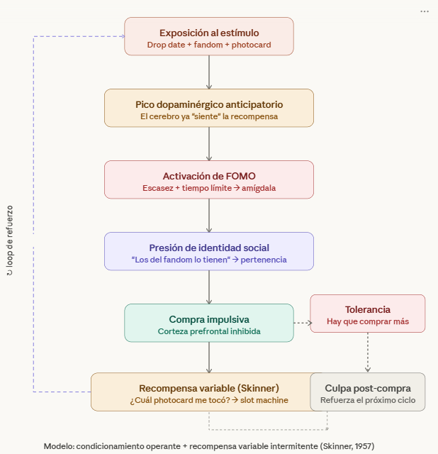 Aprovechando la obsesión k-popera de los “Zetas” para meterles todos los estímulos visuales y un esquema de Skinner de tomo y lomo para tenerlos comprando hasta que les toque todo.