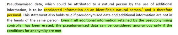 Estas dos afirmaciones del EDPB, leídas en sus (polémicas) guidelines de 2024 sobre seudonimización sólo son ciertas con matices a la vista de la doctrina Scania.